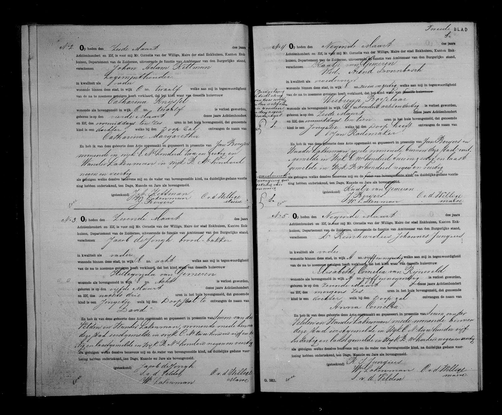 David de Jongh, 05-03-11, zn. v. Jacob, broodbakker, w. wijk E, nr. 8, en Hillegonda van Gemeren.
